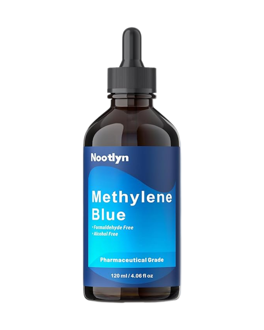 Methylene Blue is a mitochondrial optimizer. It enhances the way your cells produce ATP (your body’s energy currency), improves circulation to the brain, and acts as a powerful antioxidant to protect neurons from stress and aging.